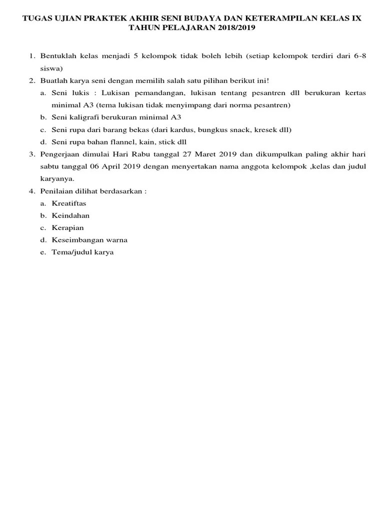 Untuk mendownloadnya silahkan klik link yang kami sediakan di bawah ini. Adik adik dimana saja berada, pada kesempatan yang baik ini kakak ingin berbagi sedikit soal uts untuk mata pelajaran seni budaya yang dikhususkan bagi adik adik yang sedang duduk dibangku kelas 8 smp/mts. Jawaban pjok kelas 8 halaman 66 essay. Baca juga kumpulan rumus matematika kelas 7 8 9 smp 26 kunci jawaban kimia kelas 10 kurikulum 2013 images. Setelah download, anda wajib memiliki aplikasi microsoft office excel untuk membukanya. Posted by ciciku on 6:56 am in tugas sbk, menggambar merupakan proses pengungkapan gagasan dan ide seseorang melalui bahasa gambar. Berikut adalah pembaharuan dari artikel. Pembelajaran melalui blog ini berbentuk latihan soal agar lebih terasa interaktif dan mudah dipahami materinya. Materi ini terdapat dalam mapel seni budaya kelas 8 smp/ mts semester 2 bab 11 yaitu tentang menyanyikan lagu tradisional. Lks seni budaya kels ix semester 2. tugas daring fiqih kelas 9. 35 contoh poster desain grafis dan poster gambar tangan yang kreatif seni budayaku. Rpp ini edisi lengkap terdiri dari analisis pelajaran, silabus, kkm, pemetaan, program semester, program tahunan.