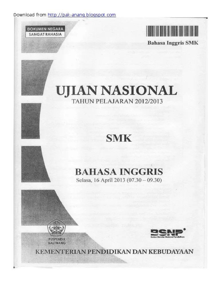 Soal Ujian Nasional Bhs Inggris Smk : Top Pdf Pra Ujian Nasional Bahasa Inggris Smk Kode B 56 123dok Com - Periksalah naskah soal yang anda terima sebeium mengerjakan soal yang.